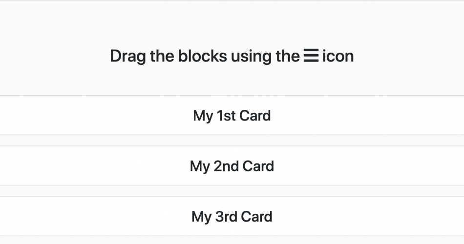 You can use an image or an icon, or even a simple text. You will need to give a class name (.drag-container in my case) to this drag handle and have it inside each of your draggable element.
