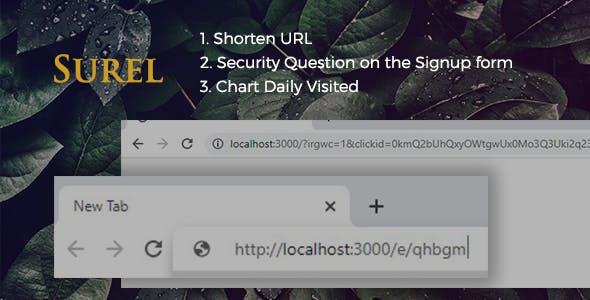 SUREL – Shorten URL with Expressjs is an apps that use to make a short URL. It’s useful to use when you share a link on the platform that limit the characters. Or this will useful to your marketing purpose. This contain signup form with security question to prevent spam into the forms. This app is completed with chart to show you daily visited linked.