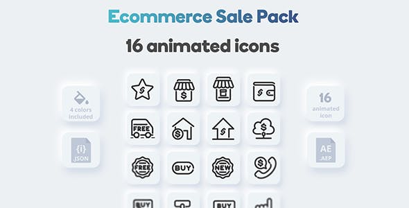 A Pack of 16 animated e-commerce icons suitable for web designers and web / app developers.
