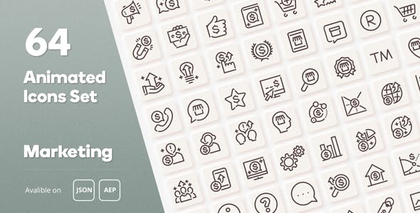 Set of 64 animated Marketing icons suitable for web designers and web / app developers.