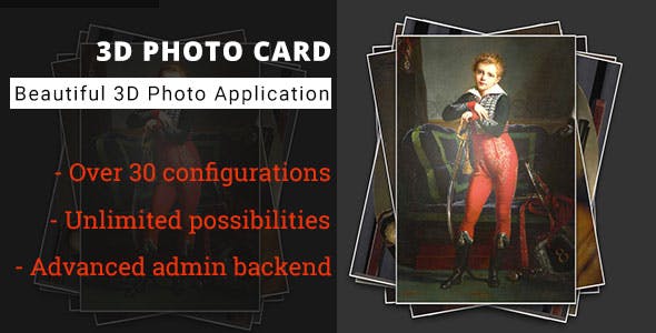 3D Photo Card simulates a stack of photo cards in 3D environment where users can flip the card up and down to reveal the extra content behind it. 3D Photo Card is a beautiful 3D application and a great way to showcase your portfolio and photos.